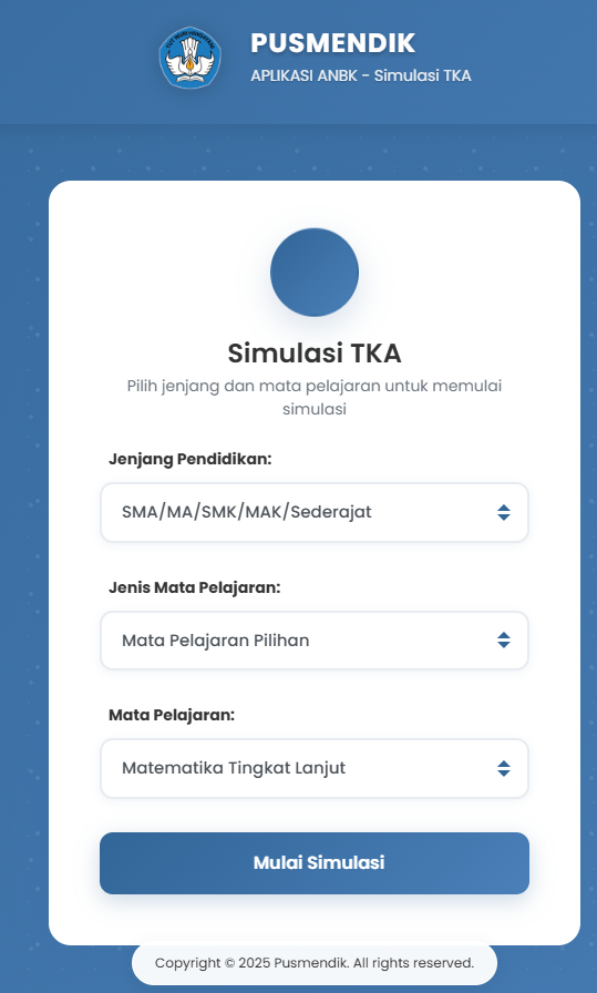 selamat mencoba simulasi Tes Kemampuan Akademik (TKA), semoga
